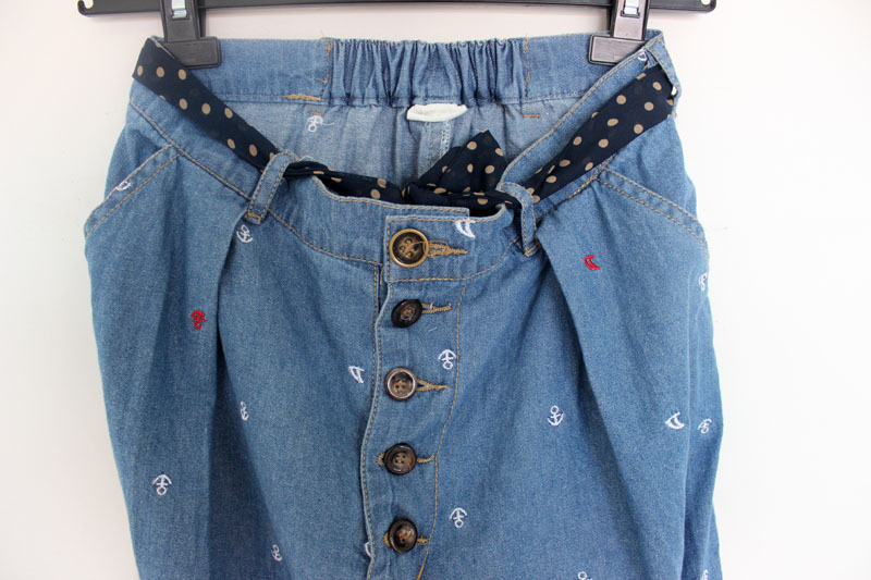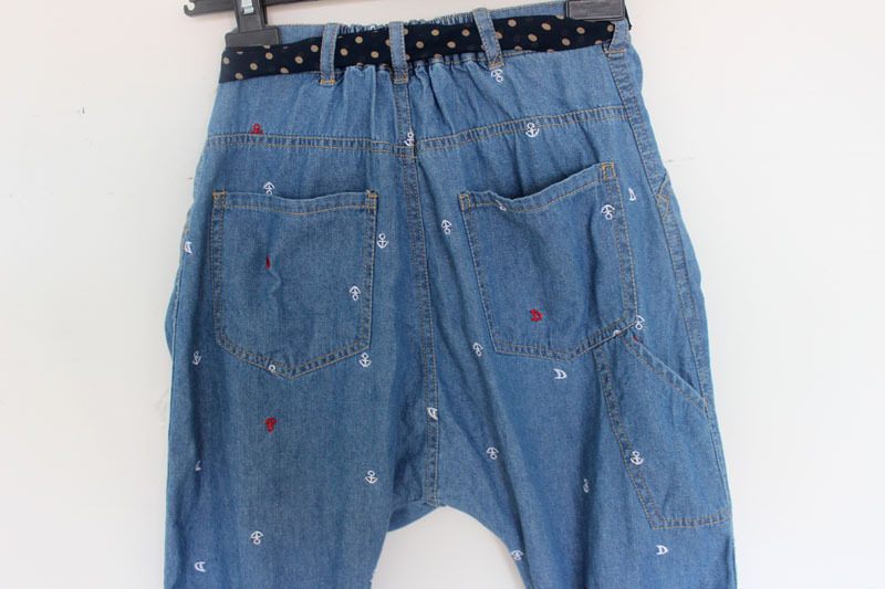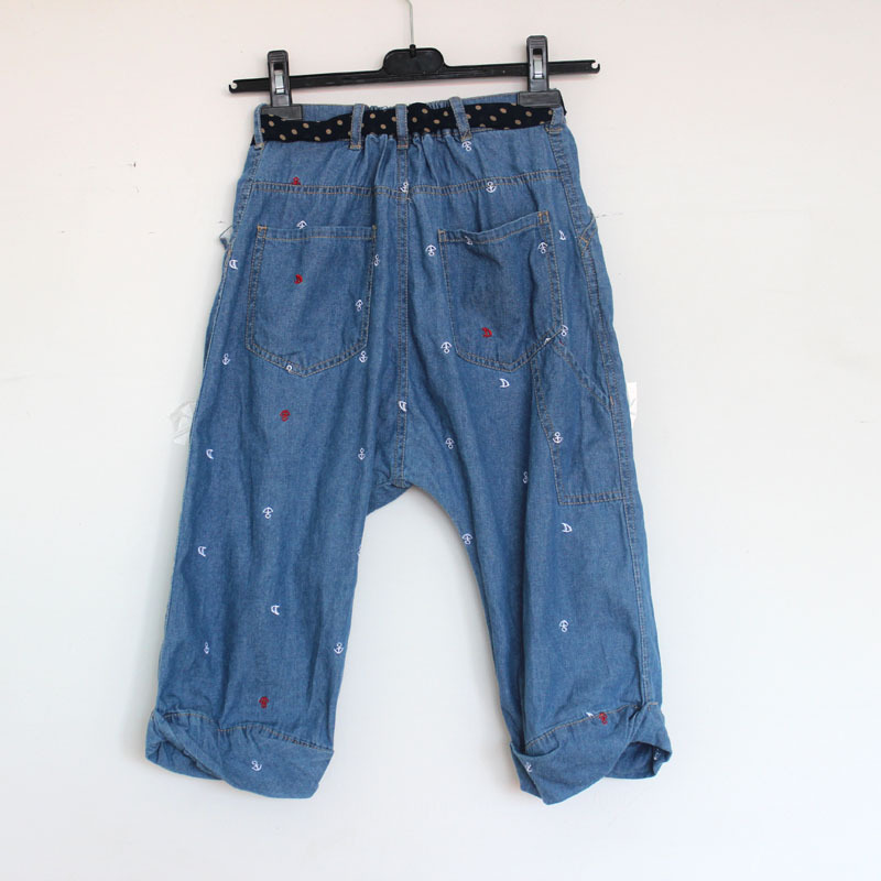 锚刺绣哈伦裤中裤圆点腰带松紧腰垮裤