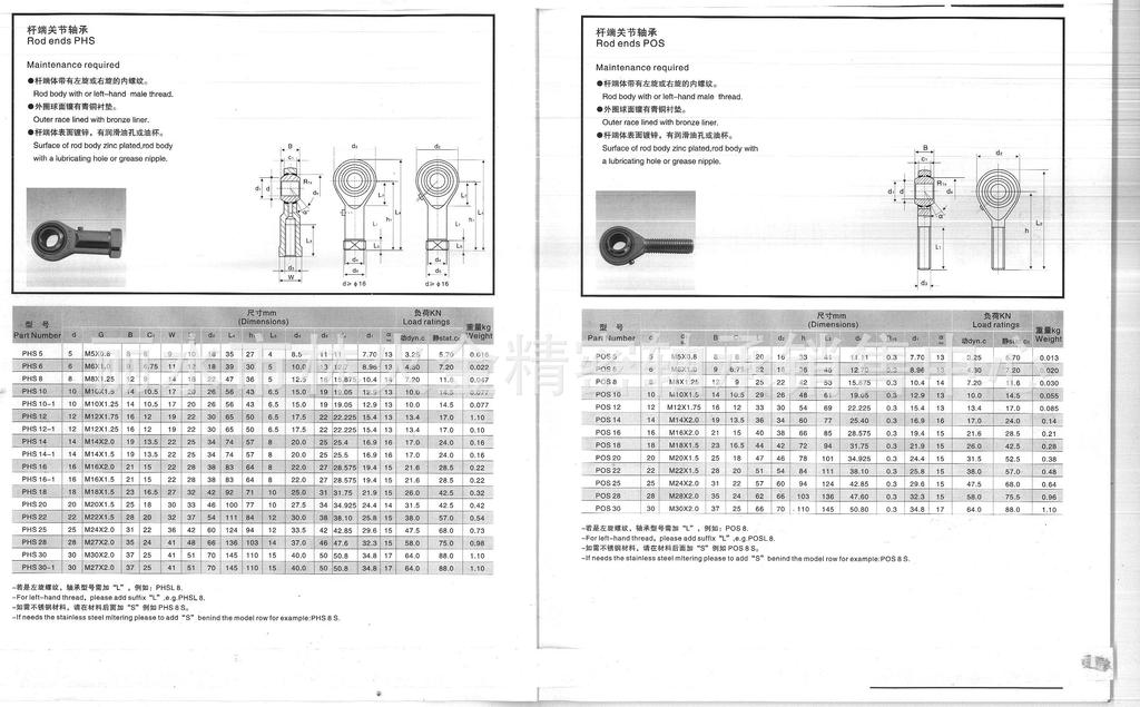 优质杆端关节轴承滚动关节件轴承细牙杆端关节轴承PHS10B/PHS10-1