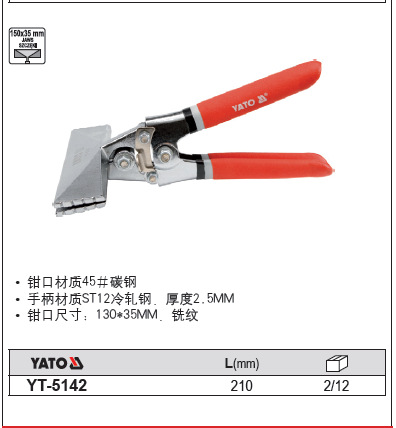 易尔拓YATO 折弯龙骨钳 YT-5142钳口尺寸130*35mm