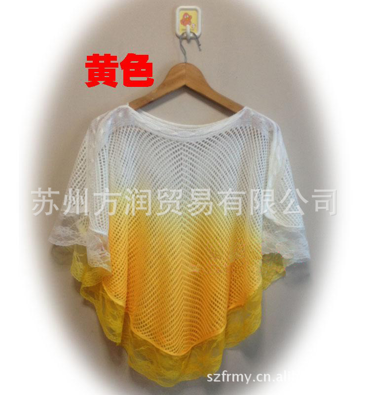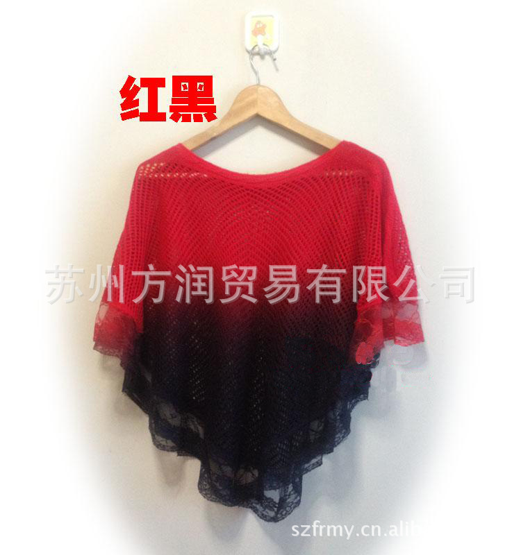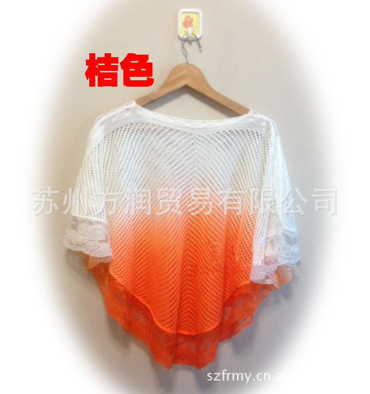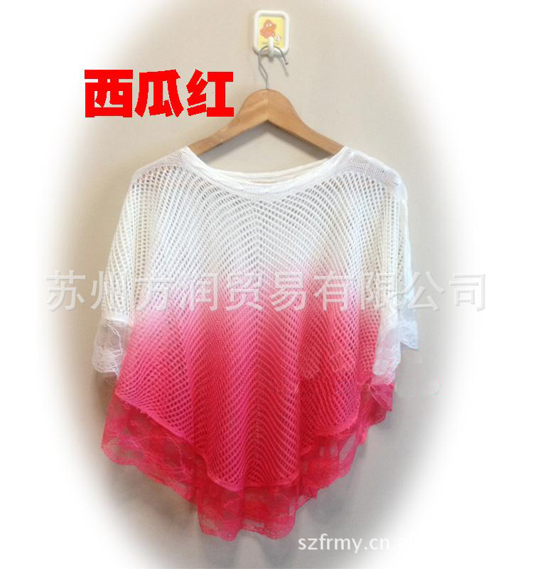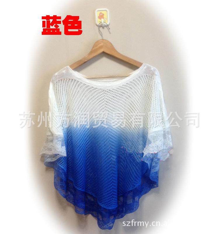 2012秋装大码女装渐变色袖套头针织衫缕空大圆领韩版罩衫