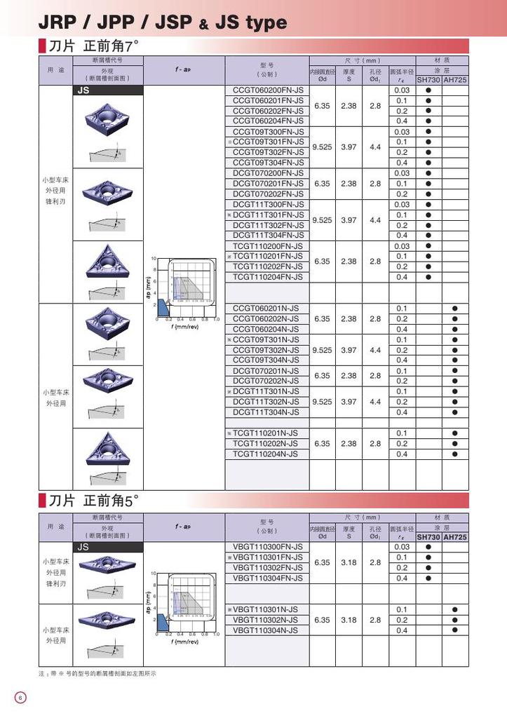 日本Tungaloy泰珂洛J系列高精度刀片 新三维刀片断屑槽JS系列