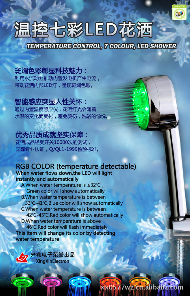 手持花洒花洒LED花洒发光变色花洒温控花洒七彩花洒多功能ABS花洒