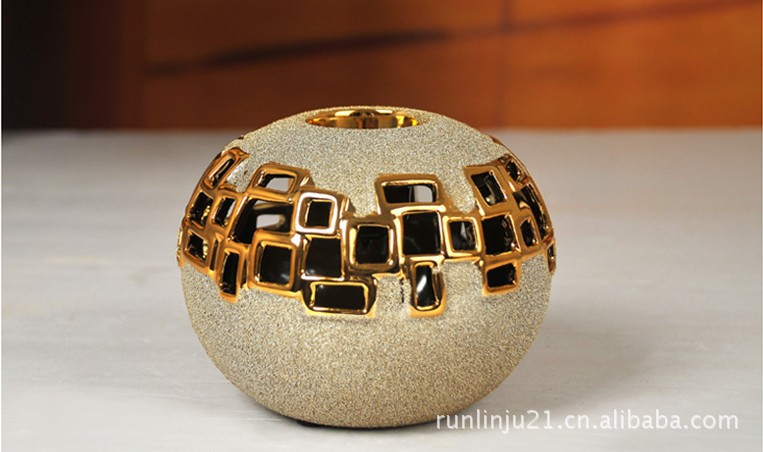 外贸原单创意烛台 高温电镀烛台 陶瓷烛台工艺摆件 镂空烛台