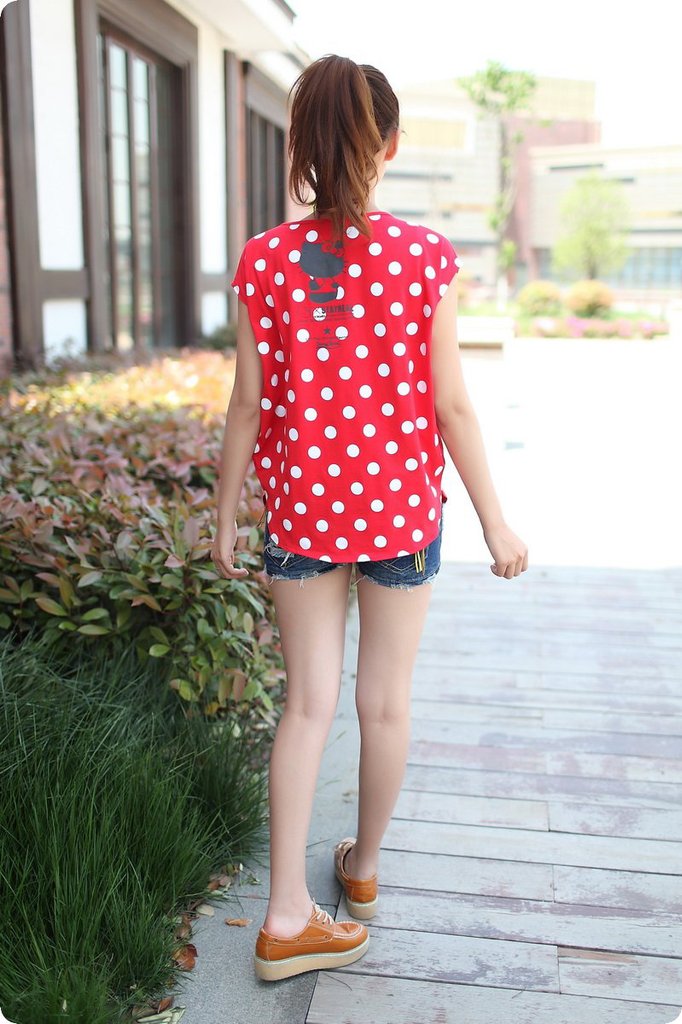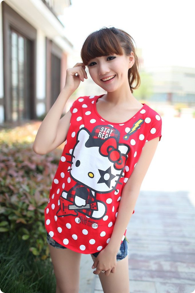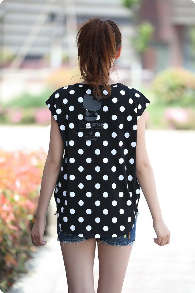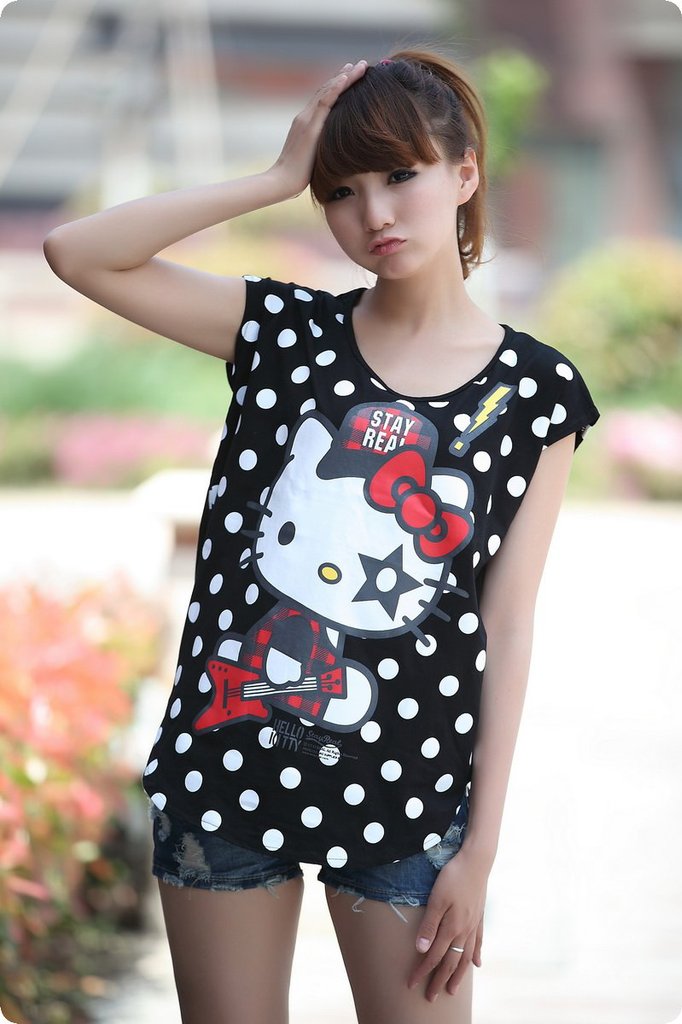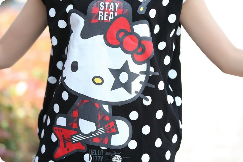夏款卡通印花KT猫波点大码短袖纯棉衫T恤