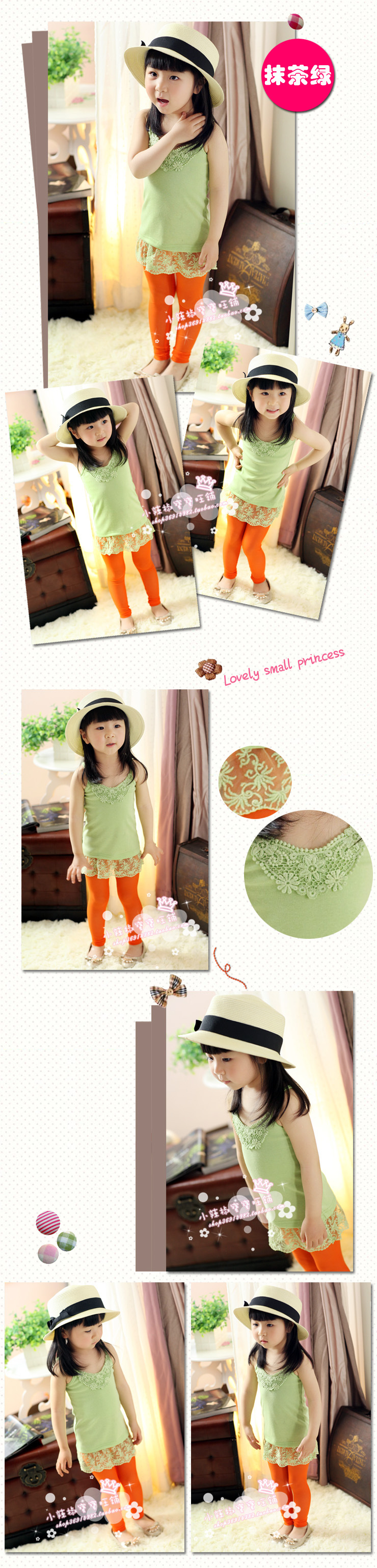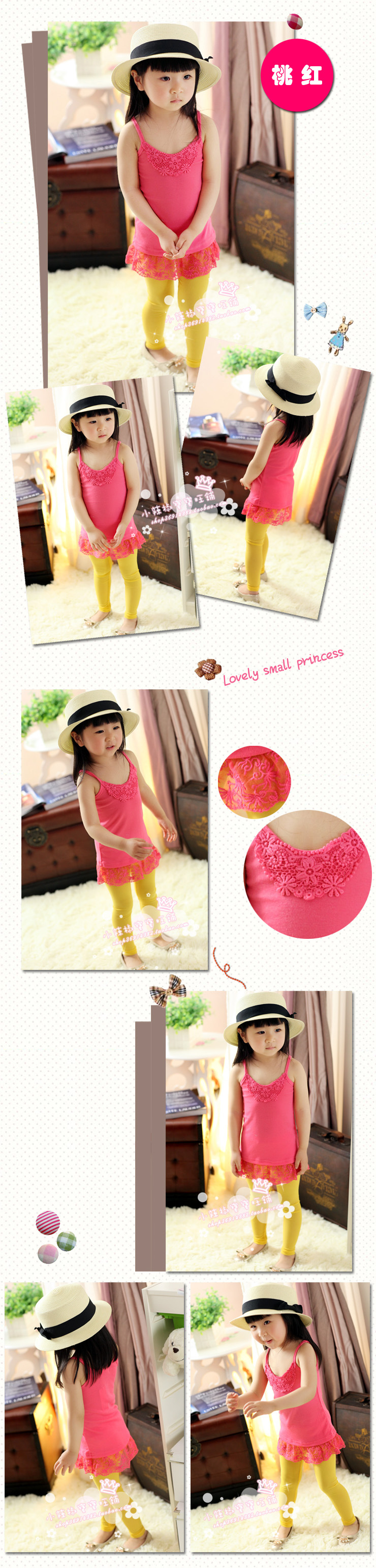 童装批发 8114女童装纯棉蕾丝吊带衫 四色 0.35KG