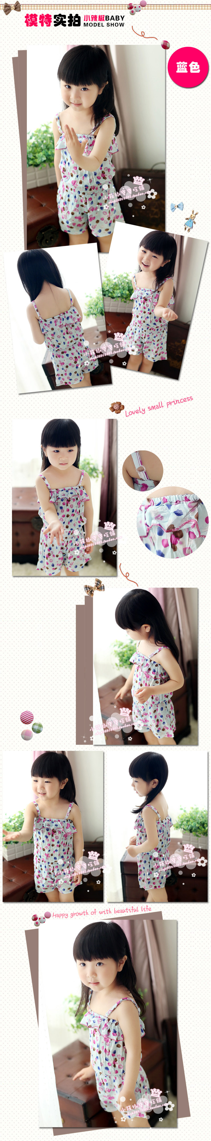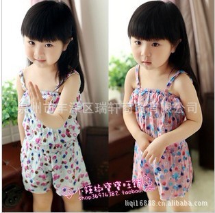 童装批发 7008女童小波点碎花吊带短裤连体裤 两色0.25kg