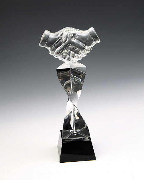 水晶奖杯浦江厂家直销 低价便宜握手奖杯 定制水晶奖杯免费排版