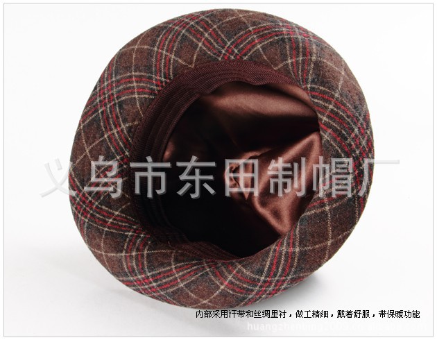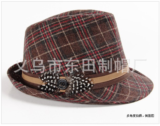 厂家供应 秋冬季 羊毛 格纹 斑点羽毛 时尚男女礼帽 定型帽 毡帽