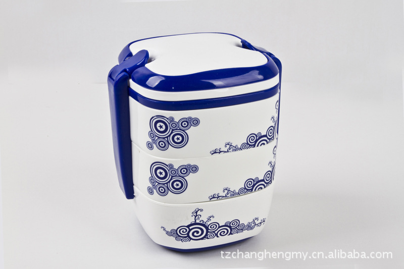 青花三层手提餐盒 青花餐盒 塑料餐盒