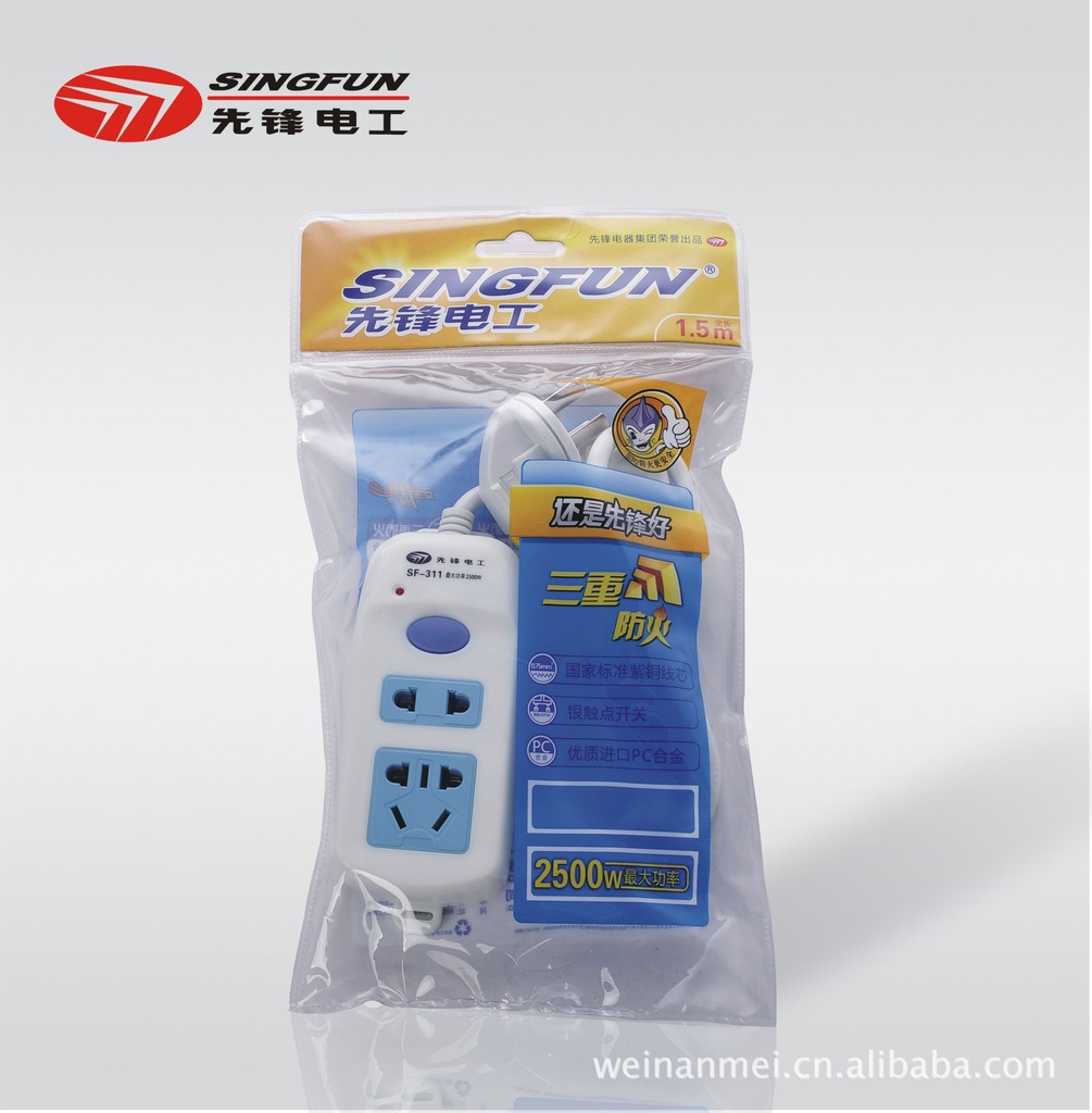 先锋插座 SF-311 2孔1.5米 新国标 三重防火 接线插排