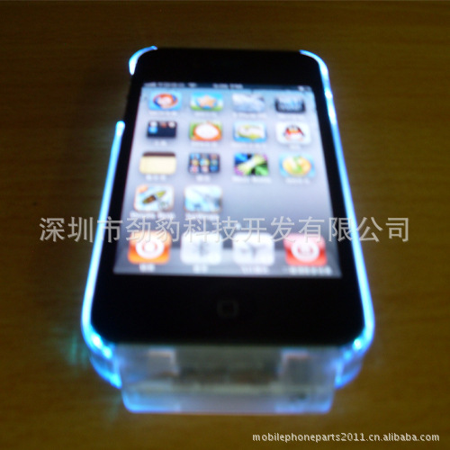 新款!!!!彩色发光手机透明保护壳座充FOR IPHONE 4 4S 4G