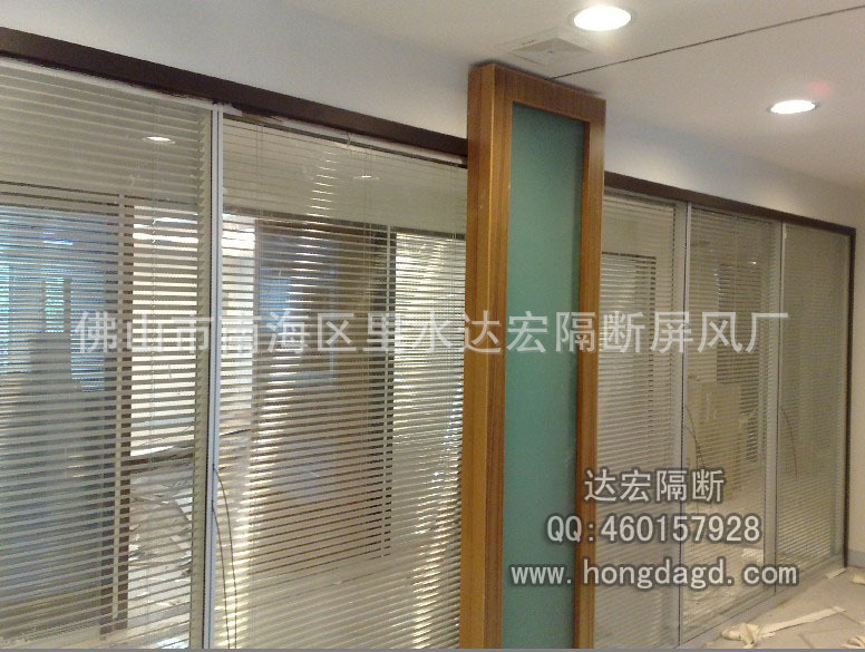 西安办公室铝合金中空百叶 透明磨砂钢化玻璃隔音成品高隔断墙