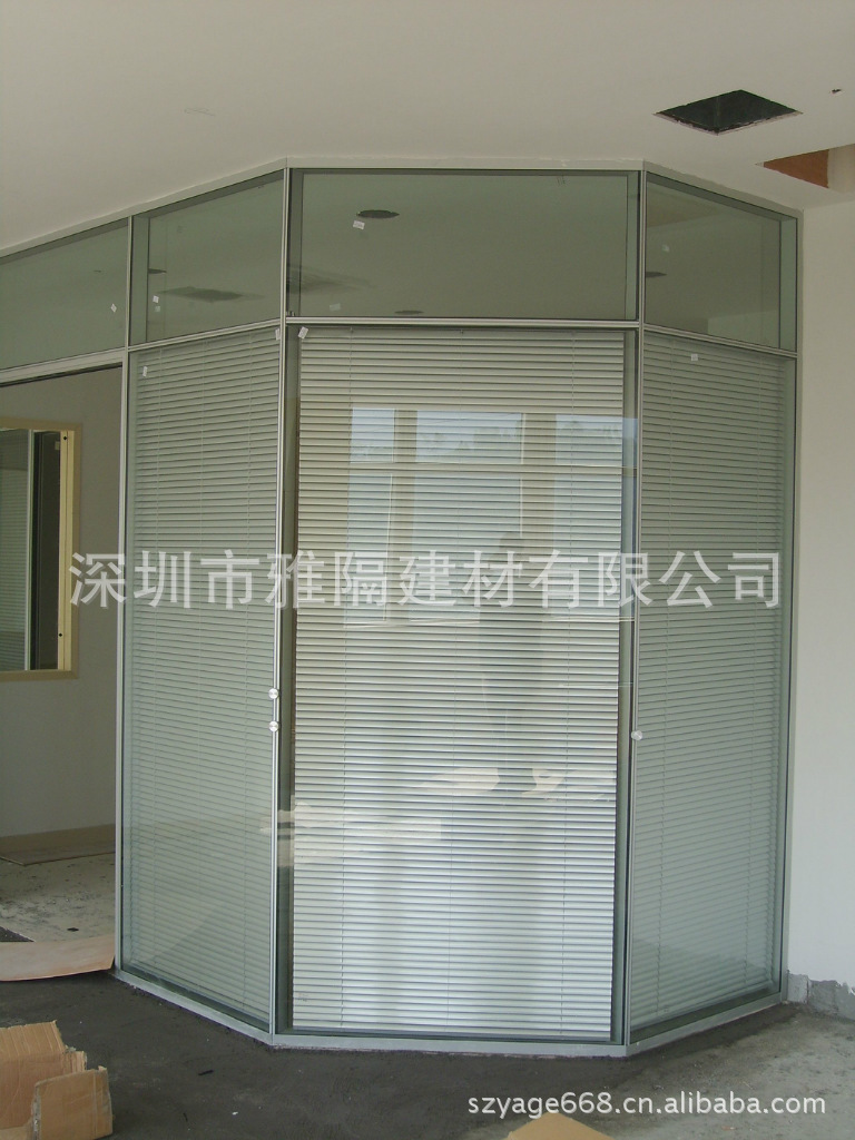 西安办公室铝合金中空百叶 透明磨砂钢化玻璃隔音成品高隔断墙