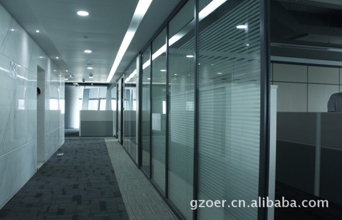 西安办公室木门隔断墙铝合金型材 透明双层钢化玻璃内置百叶窗
