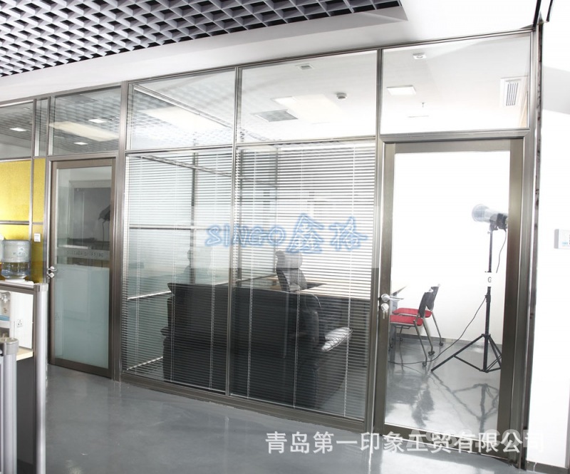 西安办公室铝合金中空百叶 透明磨砂钢化玻璃隔音成品高隔断墙