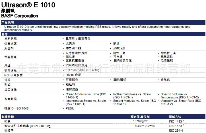 德国巴斯夫PES Ultrason E2010 注塑家用货品 连接器 汽车