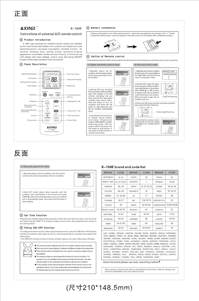 厂家直供 AXIND 品牌 K-100E 万能空调(中文版)
