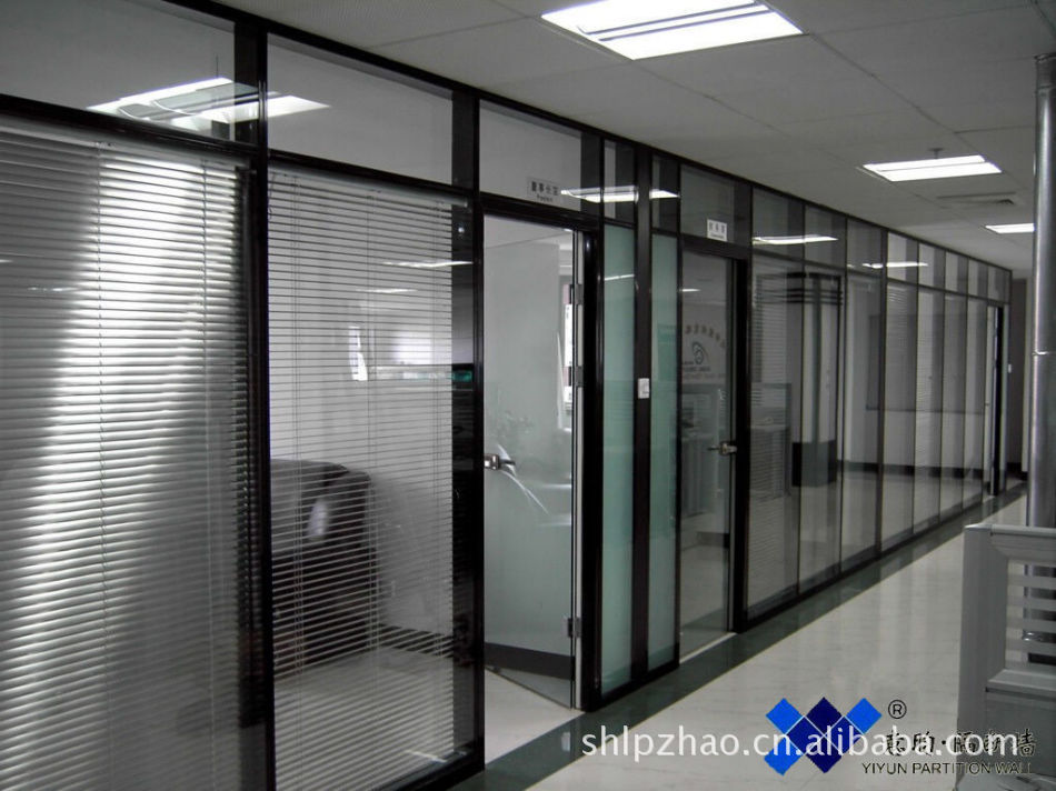 西安办公室铝合金中空百叶 透明磨砂钢化玻璃隔音成品高隔断墙