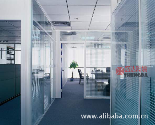 西安办公室铝合金中空百叶 透明磨砂钢化玻璃隔音成品高隔断墙