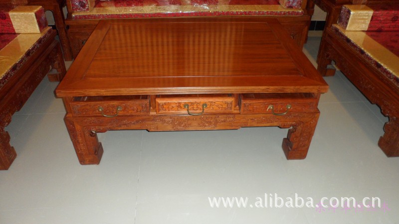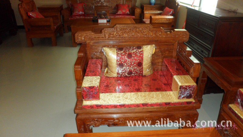 中式/红木家具 非洲花梨水龙宝座沙发茶几组合十一件套