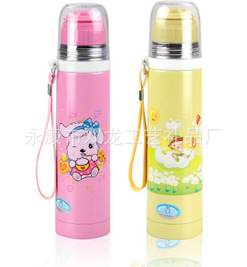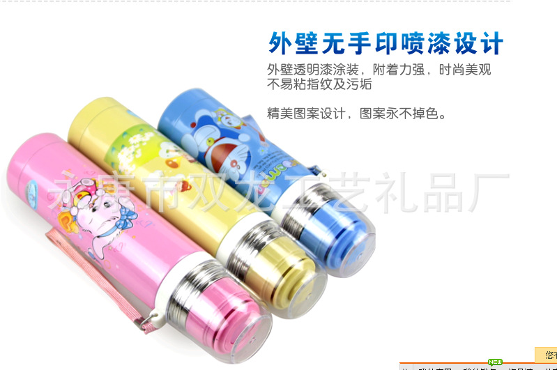 不锈钢双层真空 子弹头保温杯 儿童卡通运动水壶 手带吊带壶