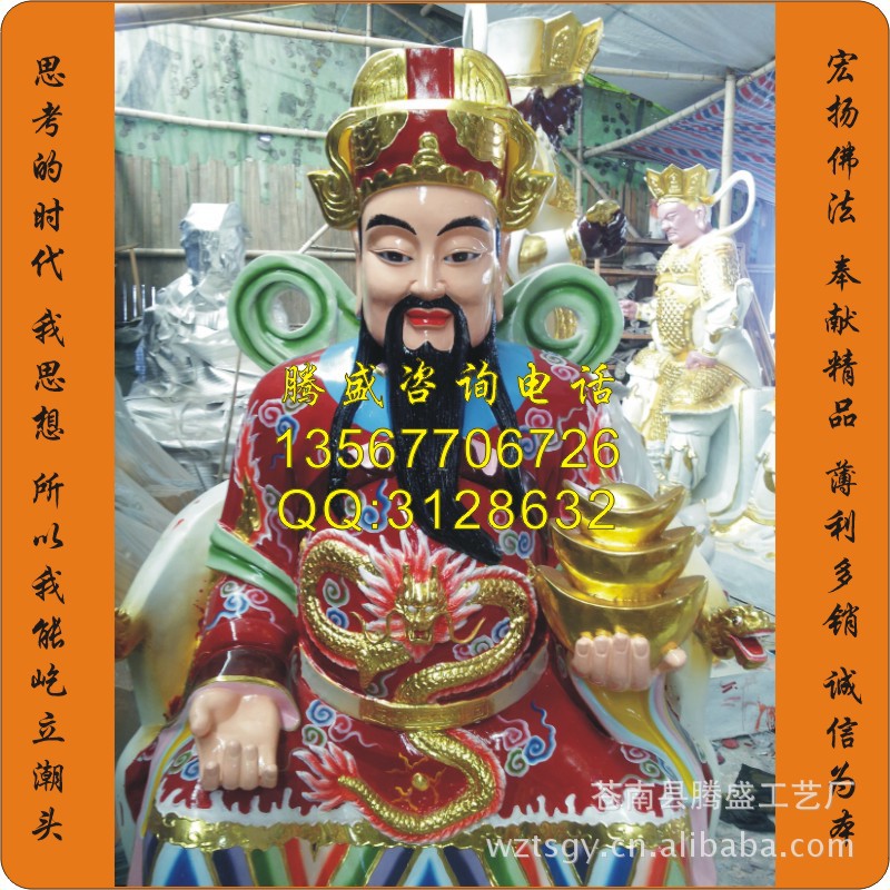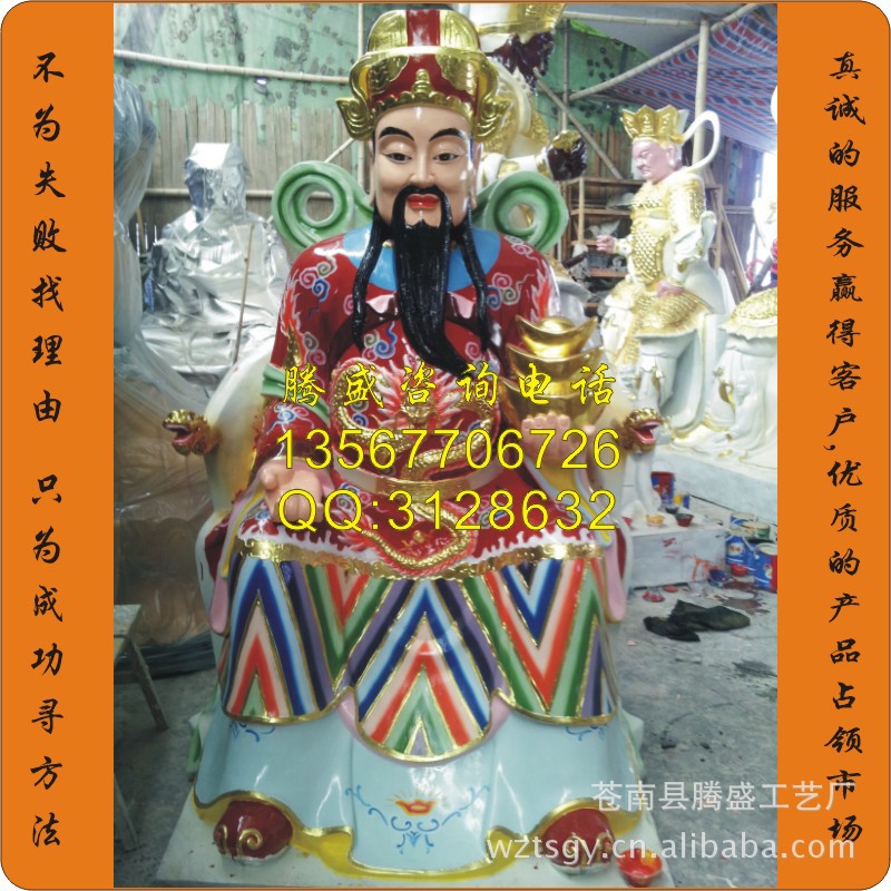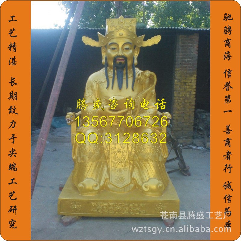 厂家直销玻璃钢神像,财神爷,贴金财神,彩绘财神,玻璃钢文财神