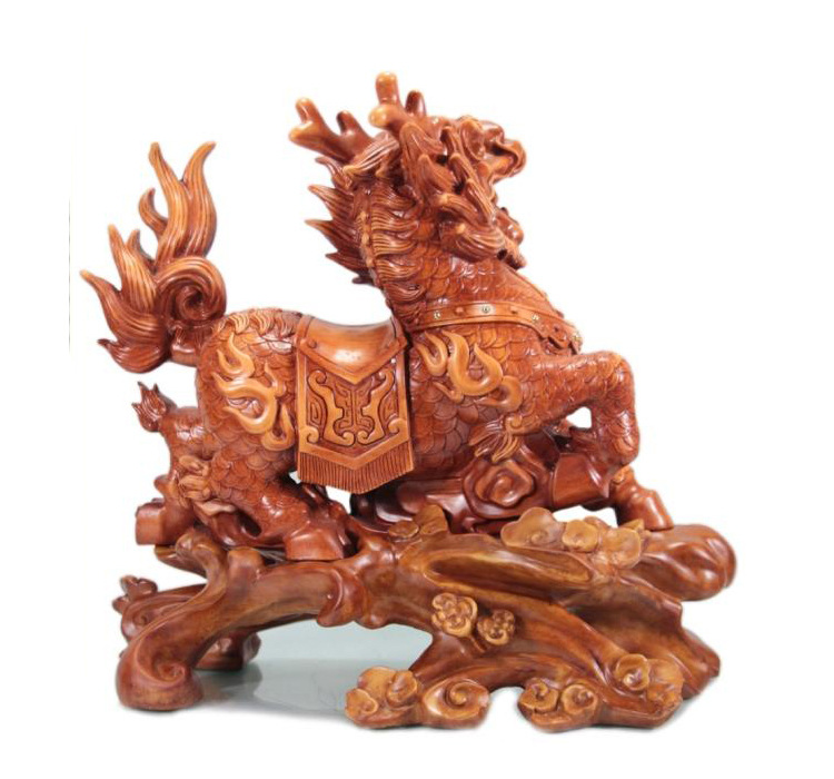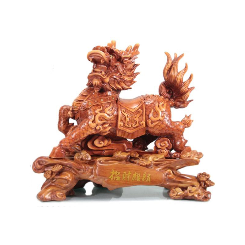 实体经营 厂家供应高档工艺礼品 招财麒麟仿木摆件