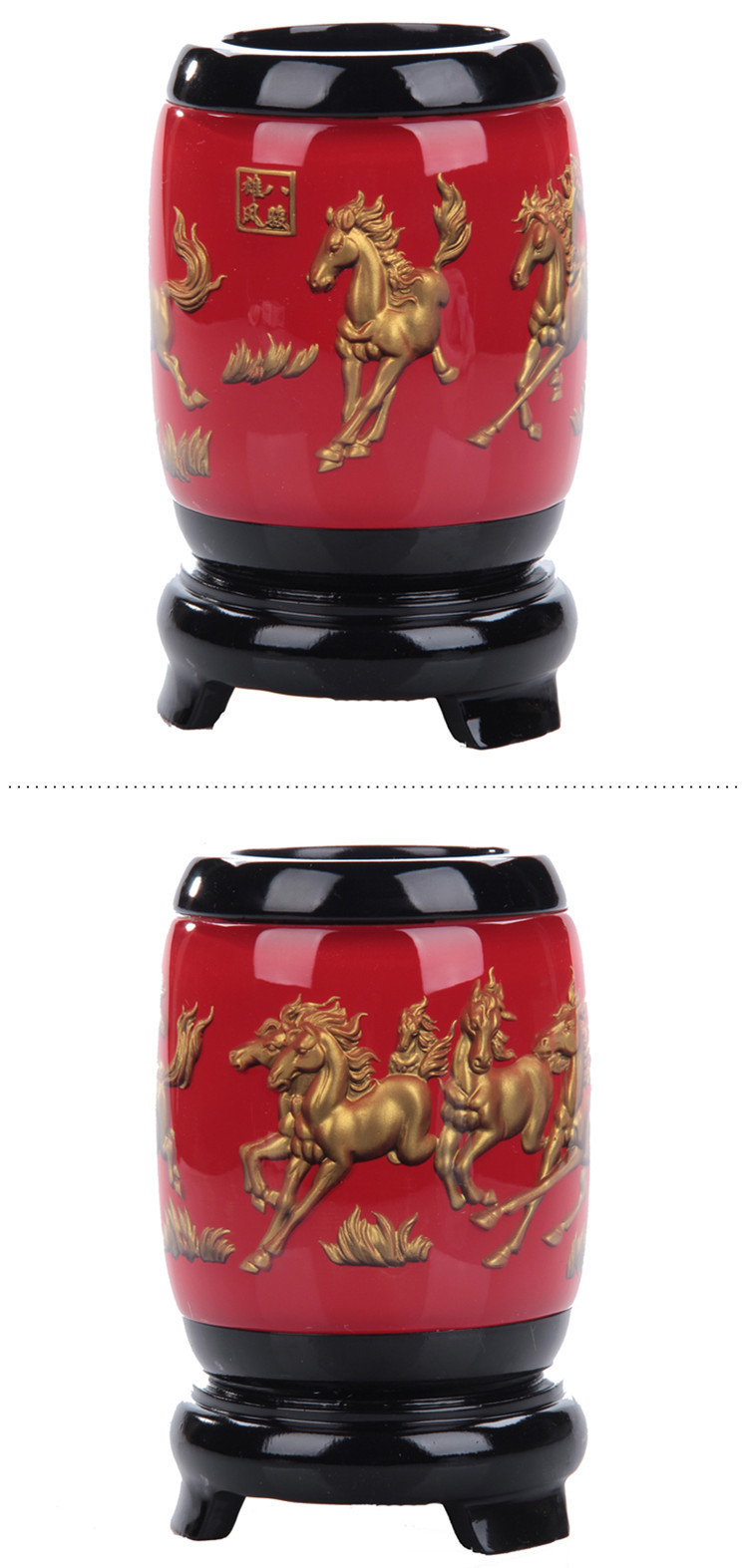 富贵红沙金马到成功笔筒商务礼品办公室摆件