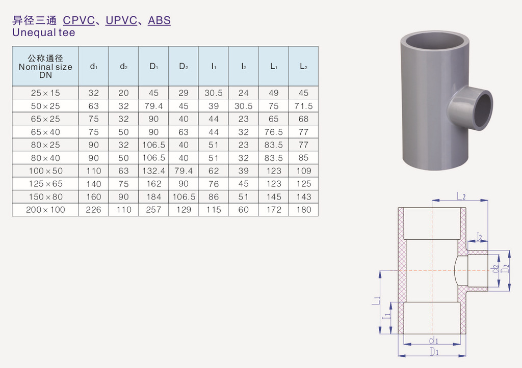 UPVC、CPVC、ABS异径三通 环琪 华亚 协羽 南艺 佑利 南亚