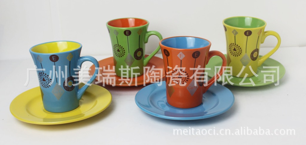 时尚花面陶瓷咖啡杯碟,陶瓷咖啡杯碟产品批发订做