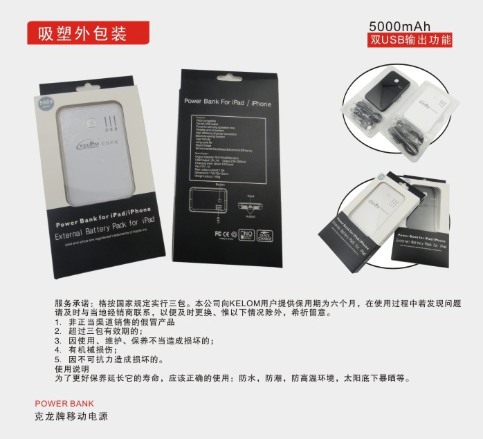 双USB输出移动电源 手机外置电池 手机便携移动能量仓