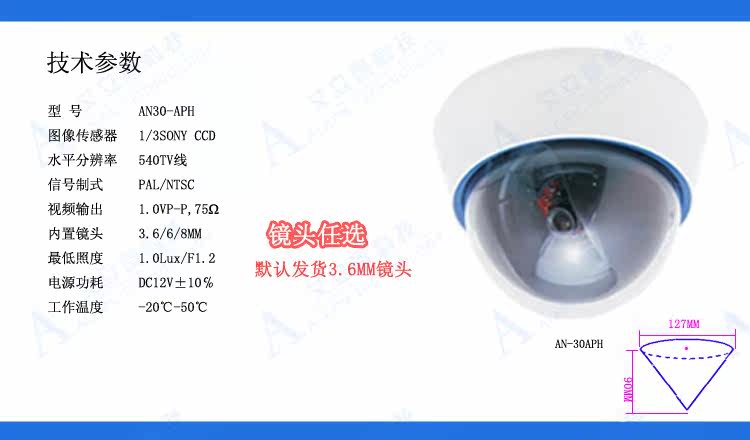 SONY 540线 高清监控摄像机 小型半球摄像机 无红外