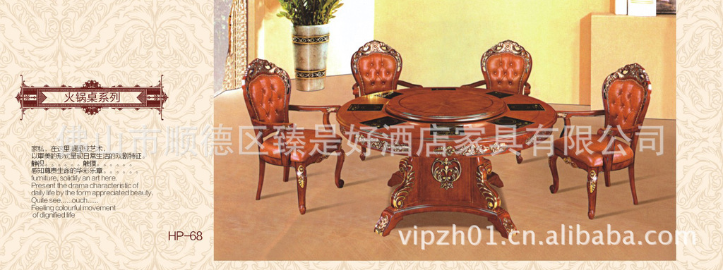 全网热销火锅桌 臻好火锅餐台 橡木描金电动餐桌豪华实木雕花餐台