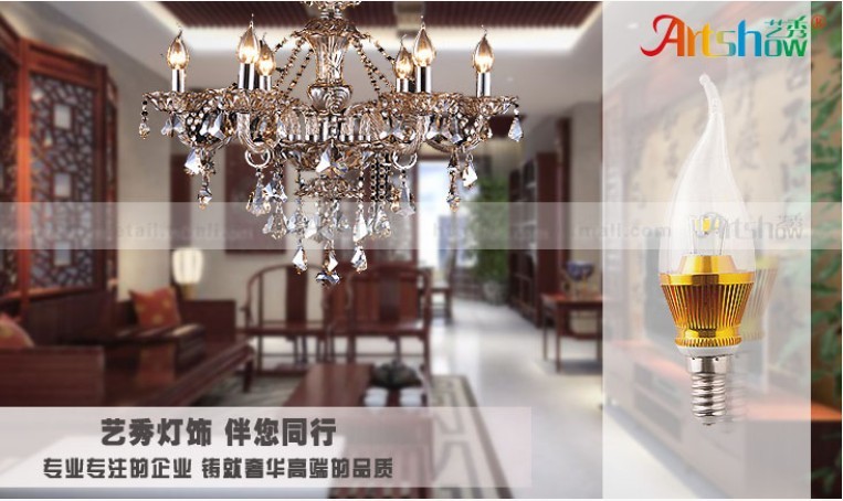 佛山凌恩 智能尖泡 LED全彩灯泡水晶吊灯 E12/E14螺口蜡烛灯