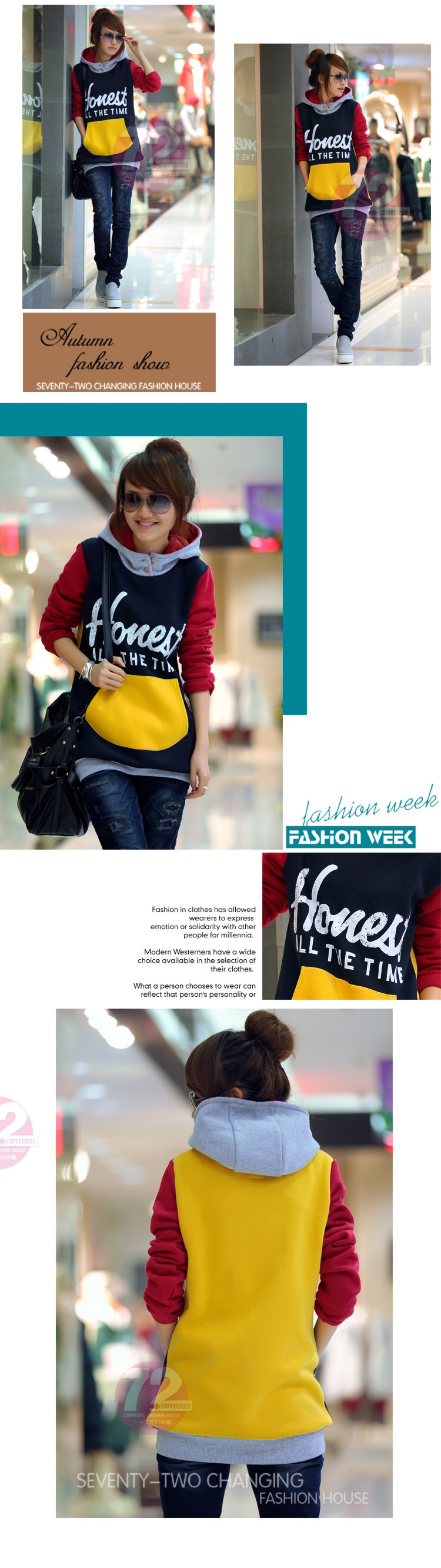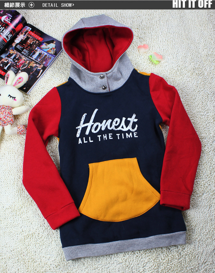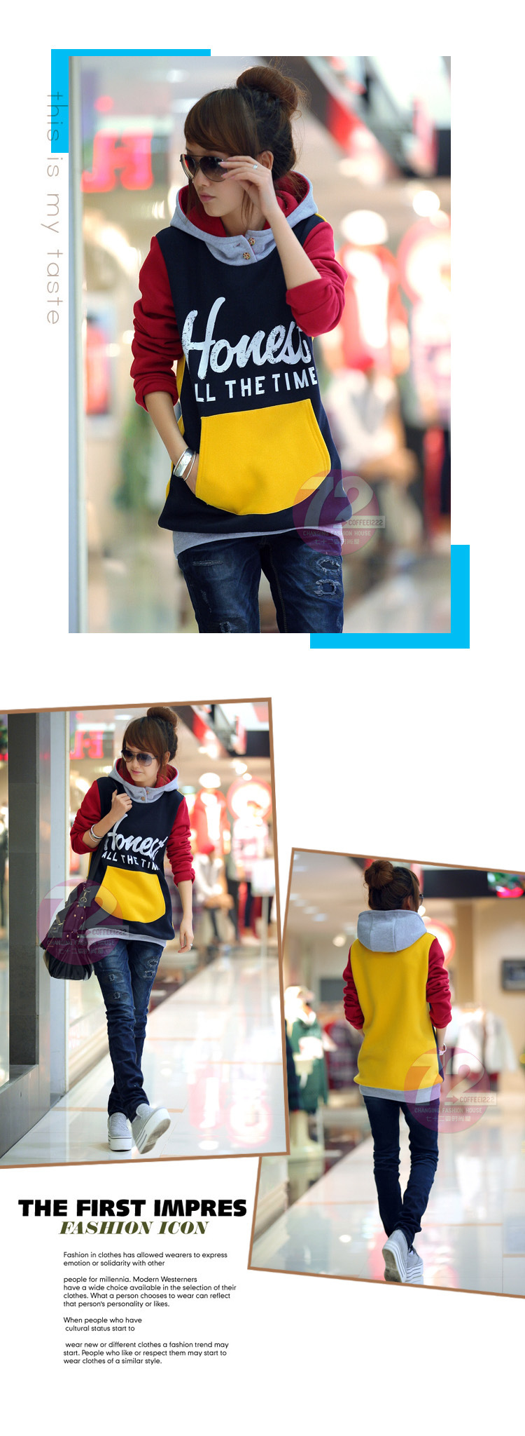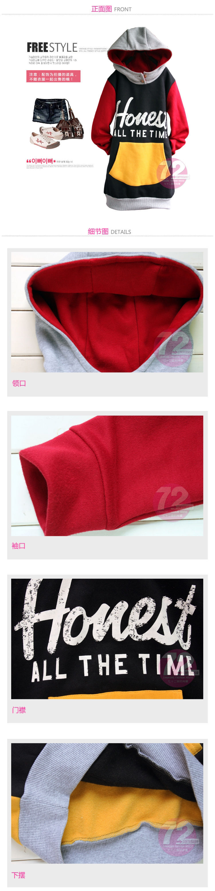 2012秋冬新款街头帅气韩版抓绒拼色大码女装连帽套头休闲女式卫衣