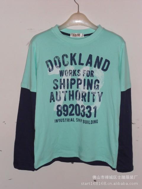 厂家订购 大男童男装/男大童圆领假两件长袖T恤