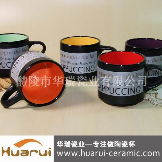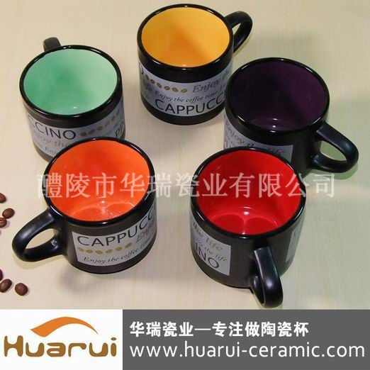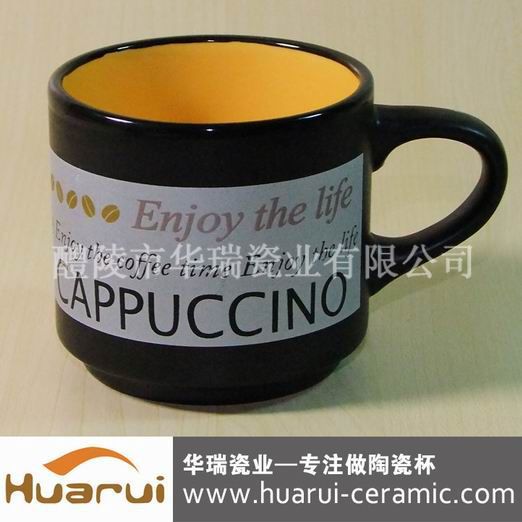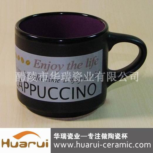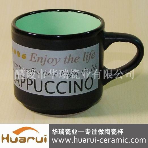 出口磨砂烤花陶瓷咖啡杯 醴陵咖啡杯厂家定制陶瓷咖啡杯彩釉杯
