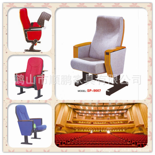 批发 木背板、木座板/实木扶手带写字板、固定脚的礼堂会议椅