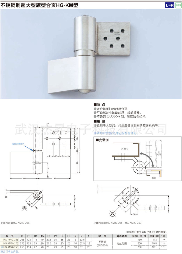 多款sugatsune世嘉智尼蓝普不锈钢制超大型旗形合页HG-KM型
