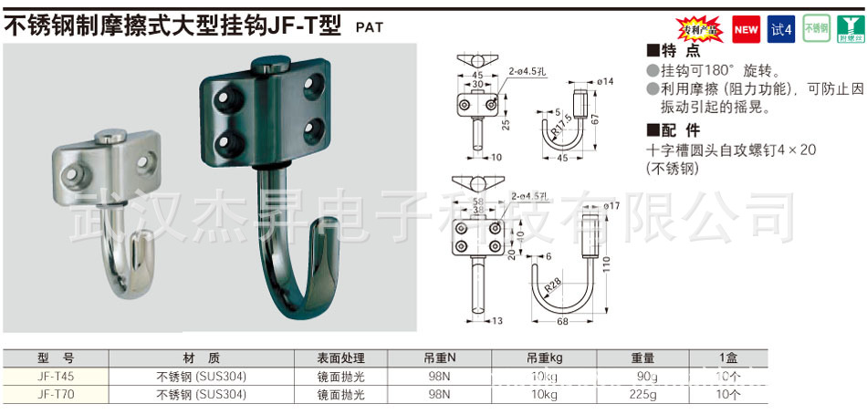 世嘉智尼sugatsune不锈钢摩擦式大型挂钩专利JF-T型