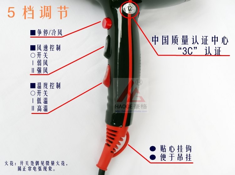 揭阳电吹风厂家 豪格6609吹风机批发 2000W交流大电机