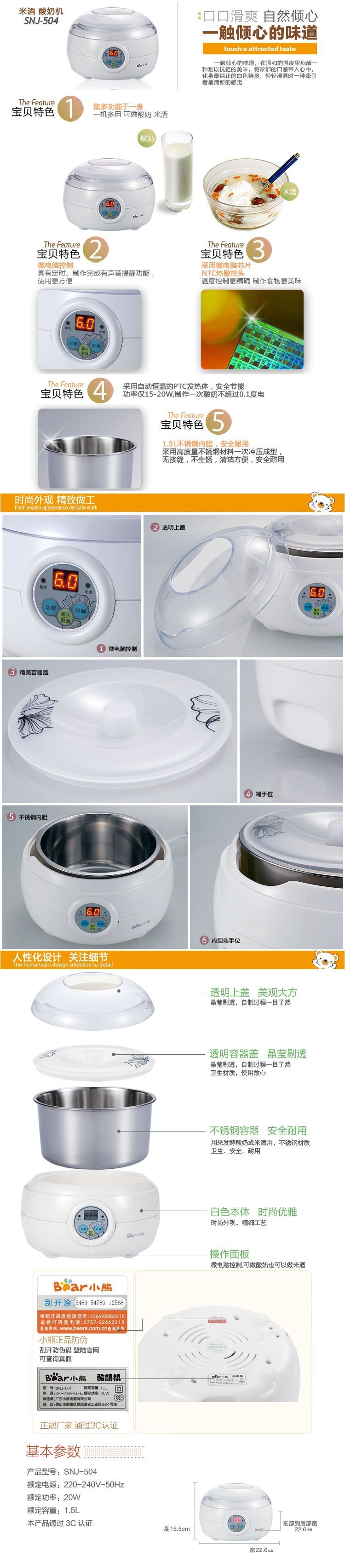 全自动Bear/小熊 SNJ-504酸奶机 米酒机1.5升 不锈钢内胆