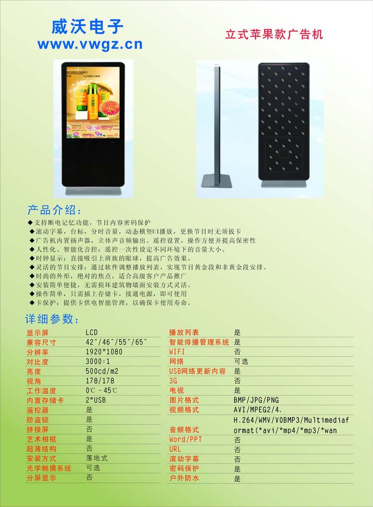 苹果款广告机 单机版广告机 触控广告机 VW-LA-420