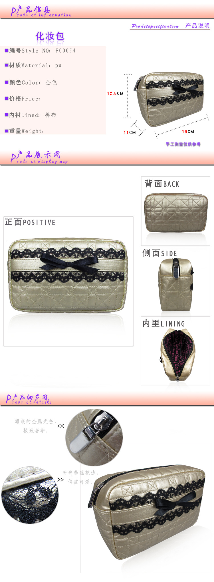 深圳化妆品公司 批发订做/OEM代生产 米色PU料格纹加蝴蝶结化妆包