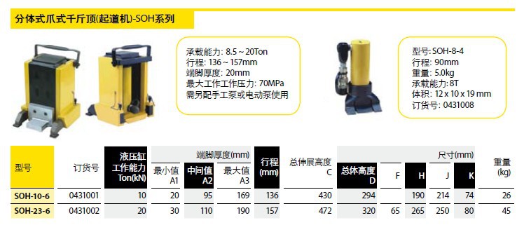 现货供应 起道机千斤顶 分体式爪式千斤顶-SOH系列