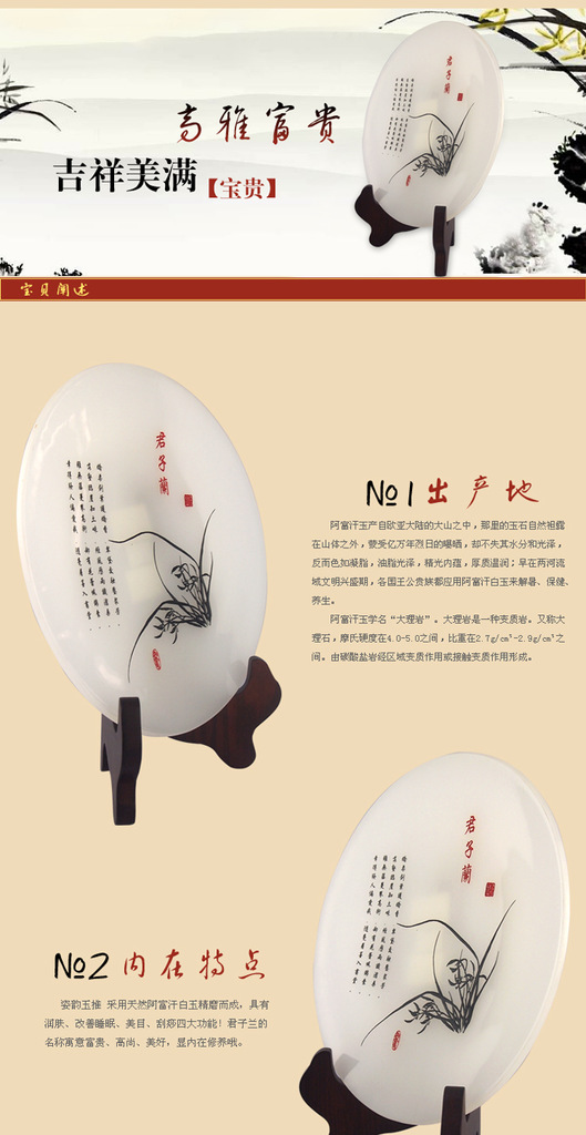 专业厂家 供应高档商务礼品 工艺品摆件 8寸玉盘君子兰