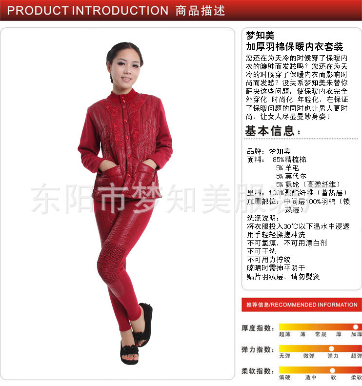 精品梦知美品牌保暖内衣2012新款羽棉开衫女款 2258