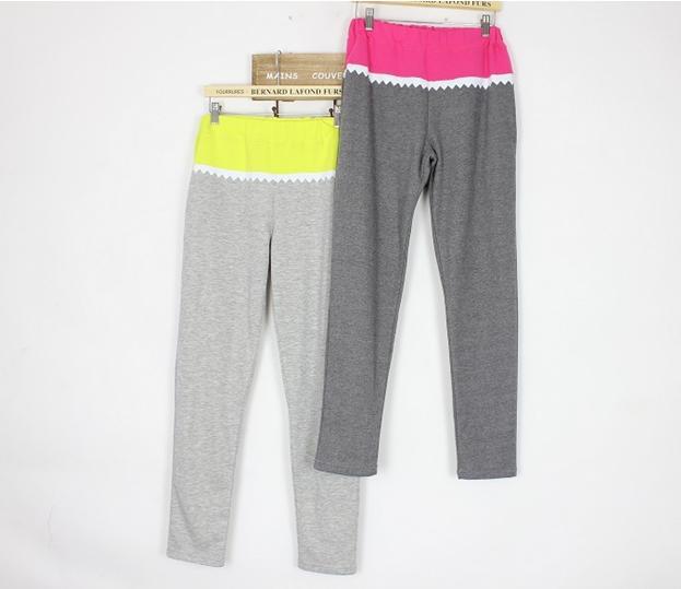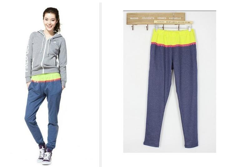 韩版女装 秋新款潮牌同款 撞色印花毛圈哈伦裤