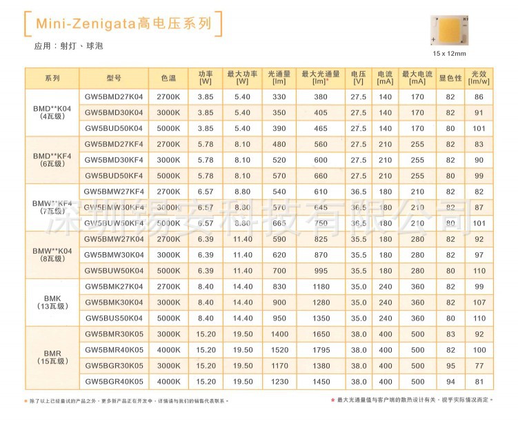 SHARP COB光源夏普BMC4W 5000K色温