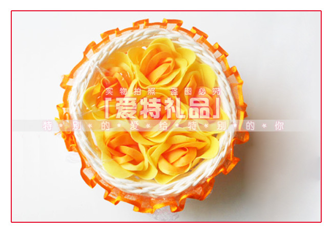 圣诞 藤篮香皂玫瑰花 藤篮圆6朵 花边